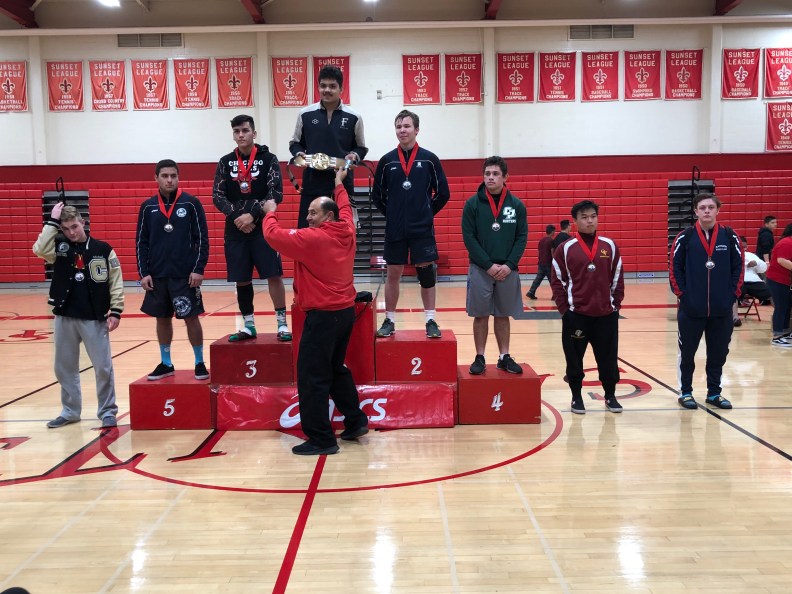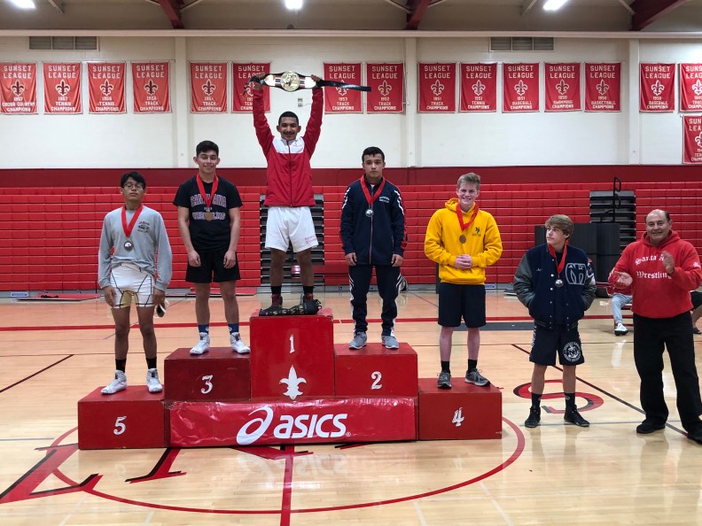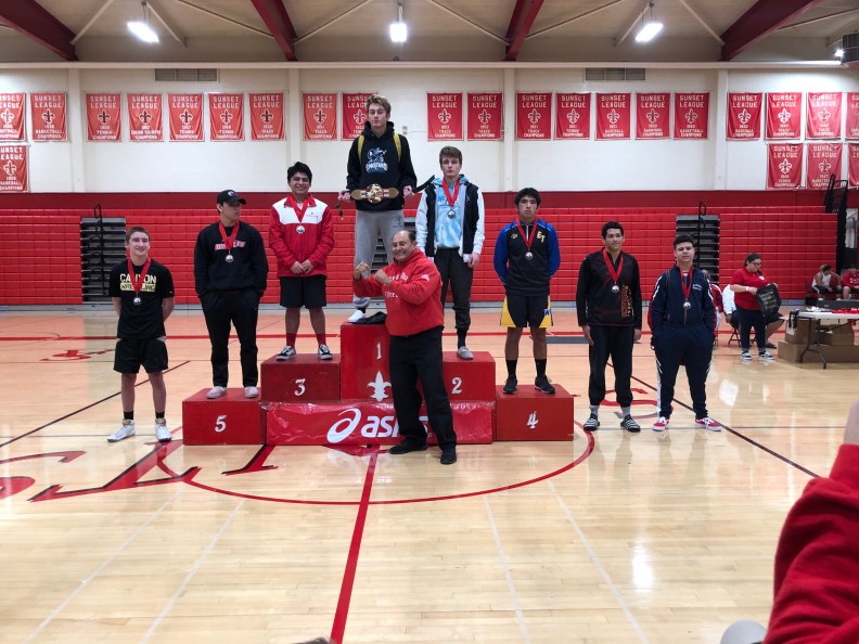 Junior 182 pounder Holden Puga took on Luis Torres of Newport first match. Puga would get the pin at the last second of the 1st period advancing him to the quarterfinals to take on Miguel Licona of Newport Harbor. Licona would get the victory over Puga 12-4 dropping him to the Consolation bracket to take on Alex Sanchez of Canyon. Puga gets the pin in :44 seconds and moves on to wrestle Jason Nguyen of Ocean View. Nguyen would get the major decision 8-0 moving Puga to the 7th and 8th Place match to take on Mike Labroad of Canyon. Puga falls short 8-4 taking home the 8th Place medal.