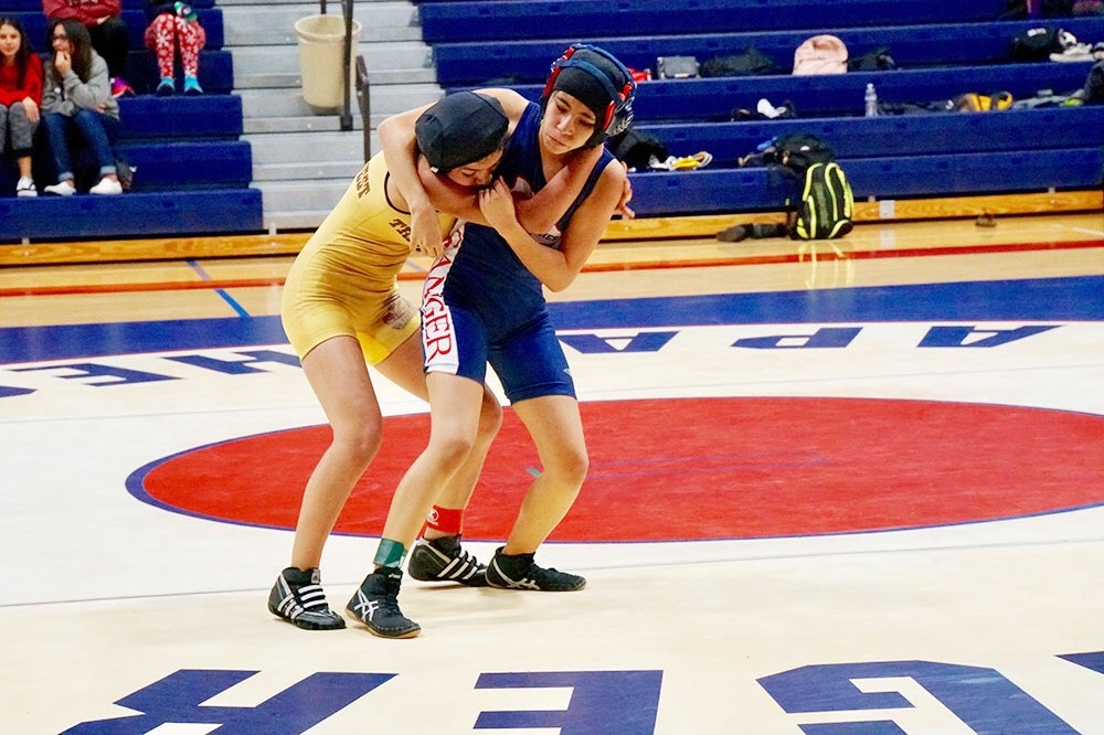 At 106 pounds Sanger Senior Merijah Morales pinned her way through the finals taking home a gold medal. Morales pinned Delarosa of Golden West in 1 min and 37 seconds followed by a pin in :55 seconds over Lupian of South Bakersfield. Morales moves on to the Semifinals and faced Medina of Coalinga. Morales would get the Fall in :40 seconds. Morales Faced Carmen Peres of Windsor High School in the Finals where she picked up the pin in 1 min and :53 seconds.